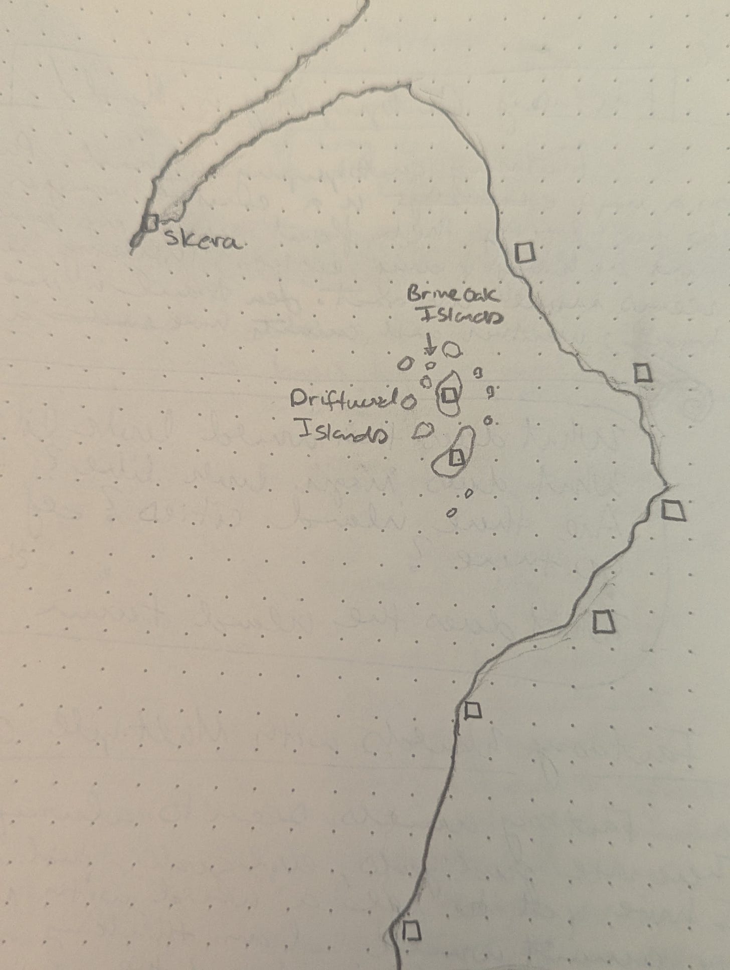 I’ve been working on a fantasy setting that has strong Norse and Heptarchy influences. Maybe working in the summer heat has me longing for cold ocean spray. I have a few locations that I came up with over the last couple months and they are all cohesive with the setting. They fit together better in my mind; when they were just floating around without the concerns of physical relation to each other.